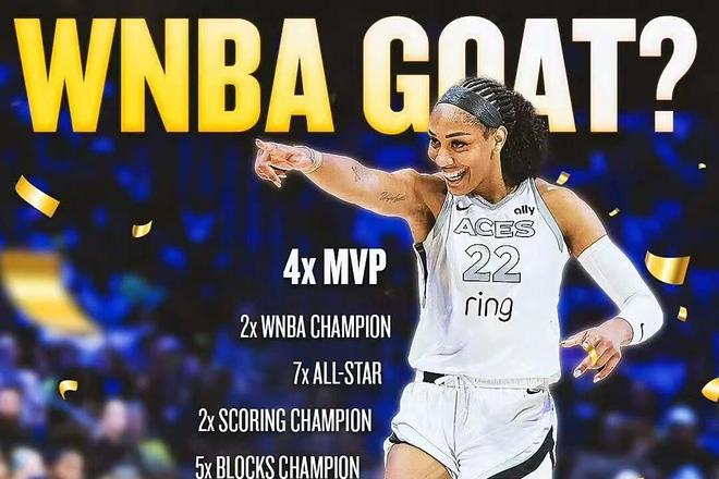 不仅如此,阿贾·威尔逊在上个WNBA赛季中,场均可以得到23.4分10.2篮板3.1助攻2.3封盖,不仅拿到了MVP奖杯,还包揽了赛季得分王、封盖王和最佳防守球员。生涯至今的荣誉,除了4次MVP,还有7次全明星、5次封盖王、2次最佳防守、2次得分王、2次总冠军,以及各种国际大赛上的荣誉。以至于有很多媒体将威尔逊称为WNBA的Goat,现在看来,没什么问题。