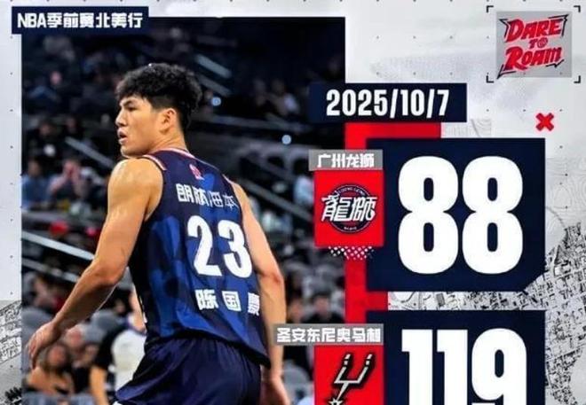 今年夏天广州龙狮队应邀参加NBA季前赛,10月7日广州龙狮队首战对阵圣安东尼奥马刺队,这场比赛广州队虽然以88-119不敌马刺队,但是小将陈国豪拿到了14分3篮板的数据,其中第三节单节拿到10分,在攻防两端的表现都可圈可点。另外广州龙狮队的李祥波、管子煜、刘颜诚、彰华非等国内球员都有得分进账;看到陈国豪高效的拿到14分,对比在国内热身赛表现不佳的焦泊乔,不知道广东队和朱芳雨有没有后悔。