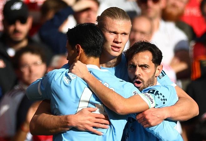 下半场易边再战,曼城换上努内斯,阿森纳换上萨卡和埃泽。第47分钟,苏比门迪劲射踢高了。3分钟后,埃泽在禁区内的爆射被多纳鲁马神勇扑出。第57分钟,曼城踢出犀利的反击。哈兰德突入禁区,起脚射门。门将把球扑出。