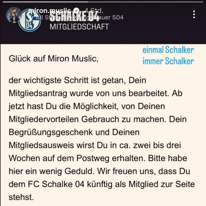 雷速体育9月27日讯 今日,沙尔克04主帅穆斯利奇在个人社交媒体晒出截图,表示他已正式申请成为沙尔克04俱乐部会员。