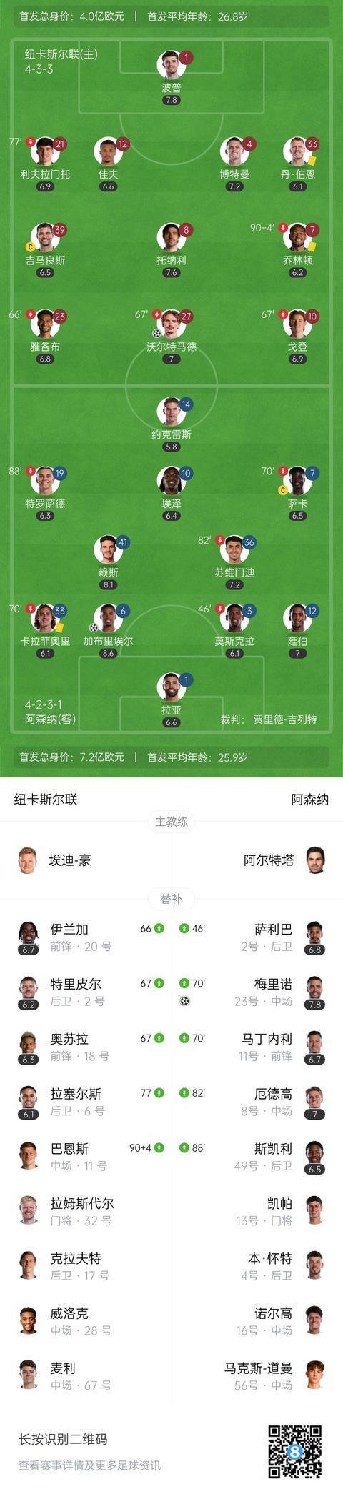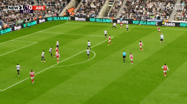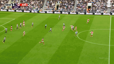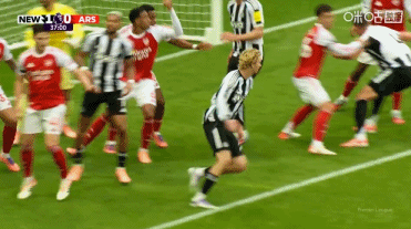 第34分钟,托纳利角球配合,随后右脚再往禁区内传中,禁区内沃尔特马德头球破门!纽卡1-0领先阿森纳↓