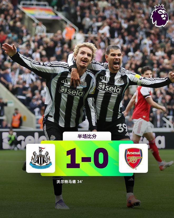 第34分钟,托纳利左路肋部传中,沃尔特马德头球破门,帮助纽卡斯尔联带着1球领先,回到了更衣室。